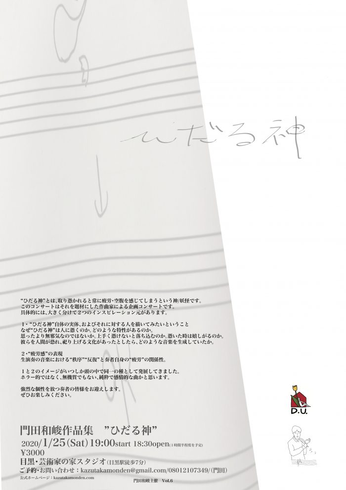 「自意識」「朝はやく起きたら顔に貼りついてくる何か」など、疲れやネガティブな人間関係などを神化してしまおうという演奏会。